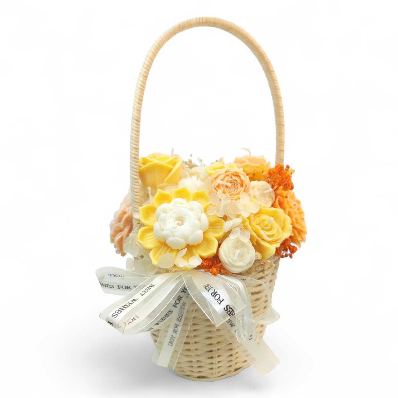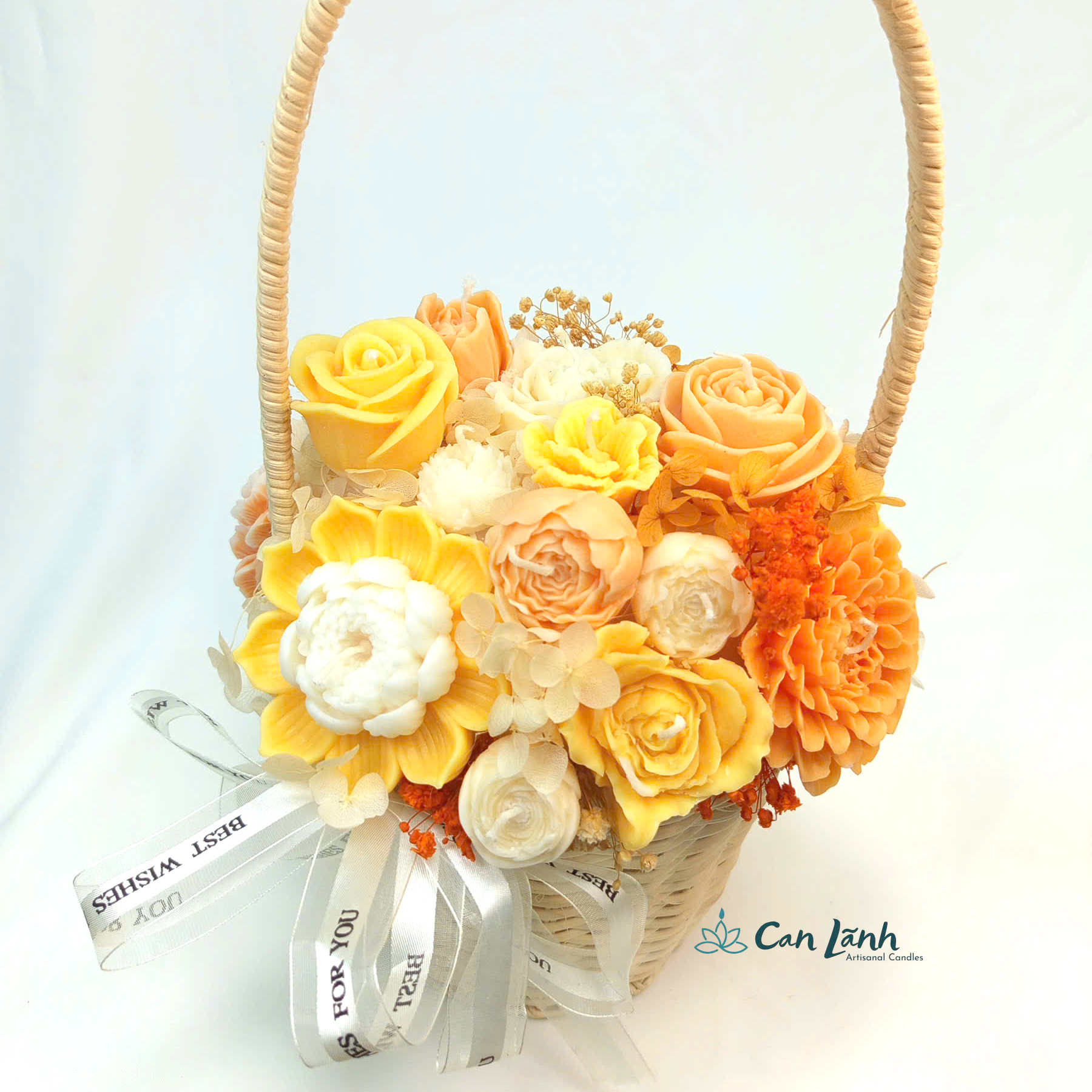 Giỏ Hoa Nến Thơm 15 Bông – Vàng Cam | Trang Trí Đẹp Mắt, Quà Tặng Đặc Biệt