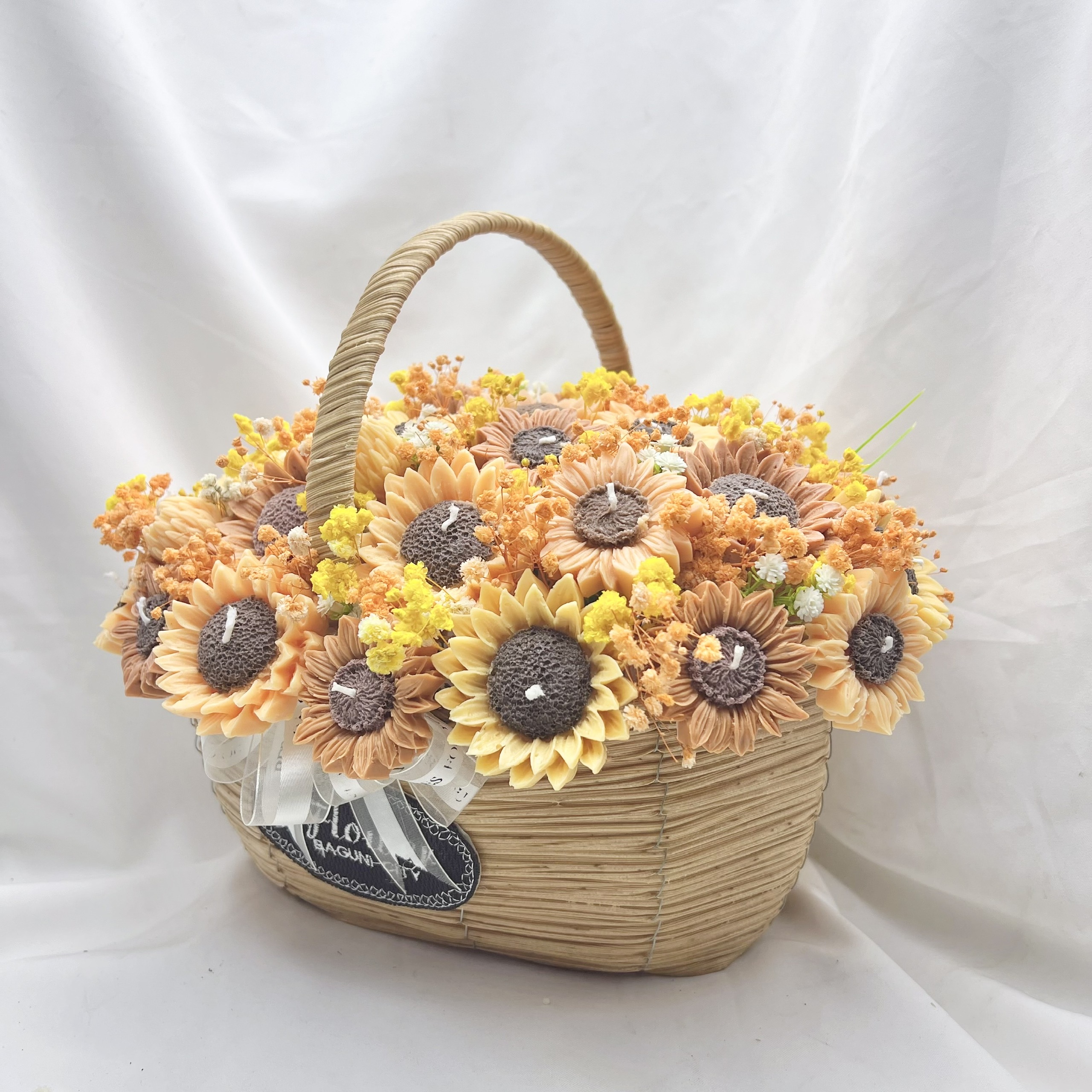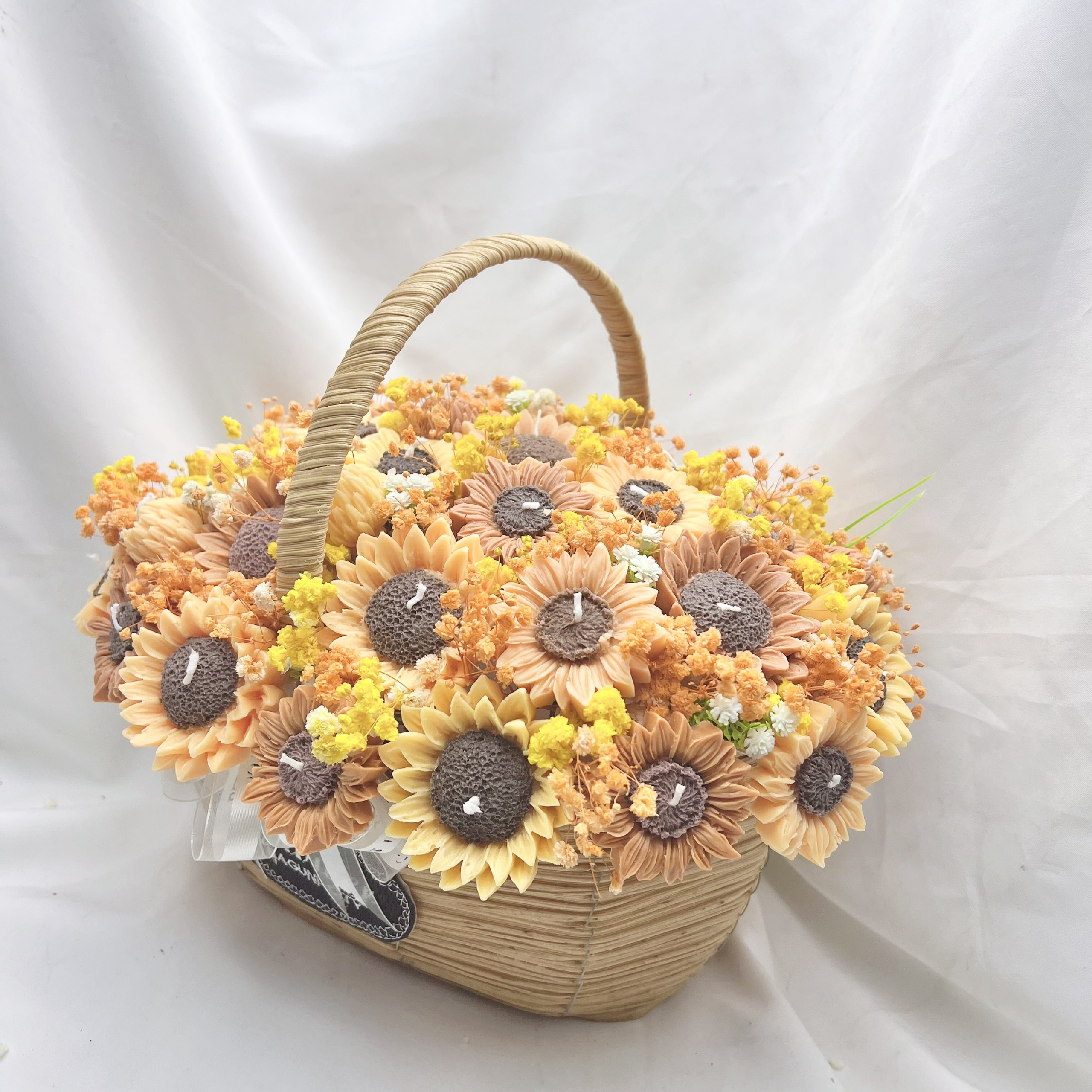 Số lượng ấn tượng: 40 bông hoa hướng dương nến được chế tác thủ công với các cấp độ màu từ vàng chanh đến cam đất, tạo chiều sâu và độ chân thực cực cao.