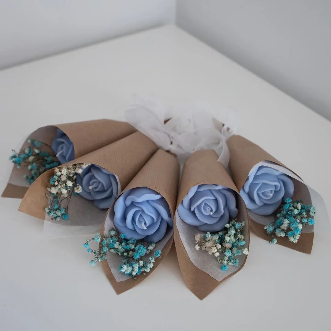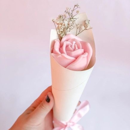 • Thiết Kế Độc Đáo & Tinh Tế: Nến tạo hình hoa hồng được gói trong giấy Kraft hình ốc quế, có thể tùy chỉnh nhãn dán hoặc thẻ tên, tạo dấu ấn riêng cho từng sự kiện.